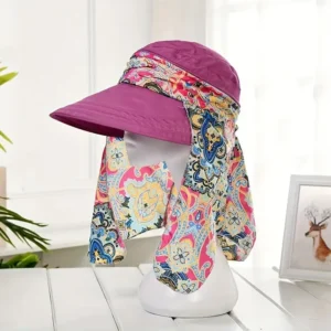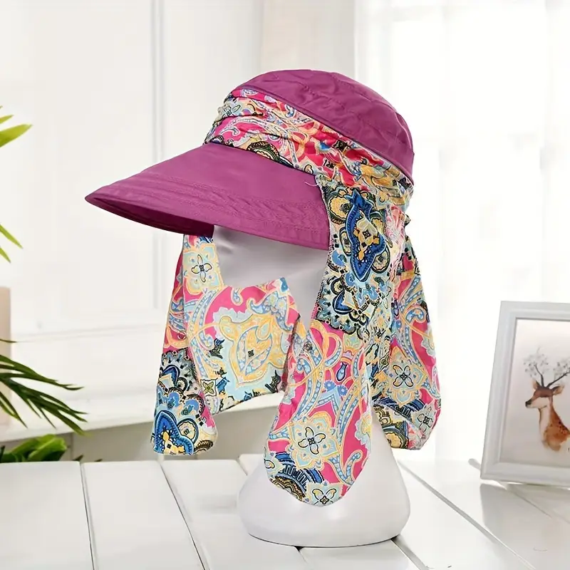 Chapeau d’été pour femme avec bord extra-large, casquette de protection UV pour le cyclisme en plein air, pare-soleil pliable coupe-vent, motif floral, ajustement réglable, tissu respirant
