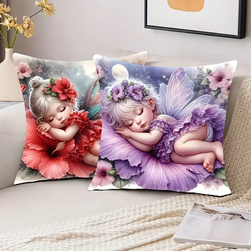 Ensemble de 2 housses de coussin en polyester style français, 17,7″x17,7″ avec fermeture éclair, lavables en machine, housses décoratives tissées pour le salon, la chambre et la décoration intérieure – Insert non inclus