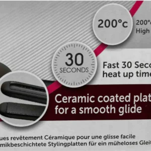 Chauffage rapide et fonctions de sécurité Ce lisseur est prêt à l’emploi en seulement 30 secondes, idéal pour un coiffage rapide le matin ou entre les rendez-vous.